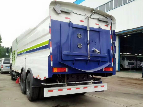 14、東風(fēng)天龍洗掃車的后門的開閉都通過液壓控制,垃圾箱內(nèi)置自潔功能,當(dāng)垃圾傾倒完成后,可快速清理垃圾箱,減少環(huán)衛(wèi)工人的工作量。