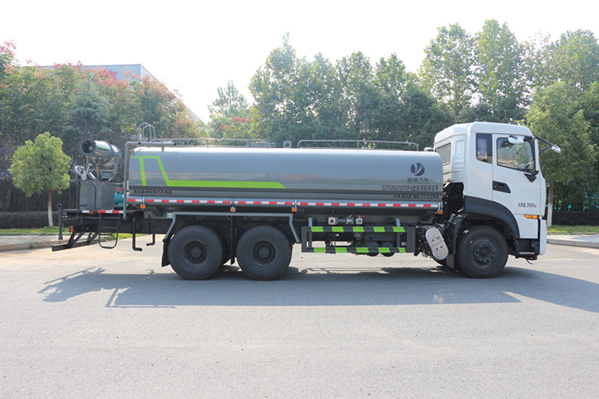 平臺(tái),帶綠化灑水高炮)。四、操作系統(tǒng):主要由發(fā)動(dòng)機(jī)帶動(dòng)變速箱,變速箱上安裝的取力器帶動(dòng)灑水泵,灑水泵產(chǎn)生動(dòng)力,將罐體內(nèi)部 的液體通過(guò)管網(wǎng)噴灑出去。工作范圍:自吸高度:≤7m,灑水寬度:≥14m,最大射程:≥28m;可調(diào)節(jié)成柱狀,射程≥28m;也可調(diào)節(jié)成霧狀,射程≥15m。選裝配置:可加裝灑藥盤(pán)、藥泵、罐內(nèi)防腐防銹、多方位進(jìn)出水接頭、電磁閥、氣動(dòng)閥等先