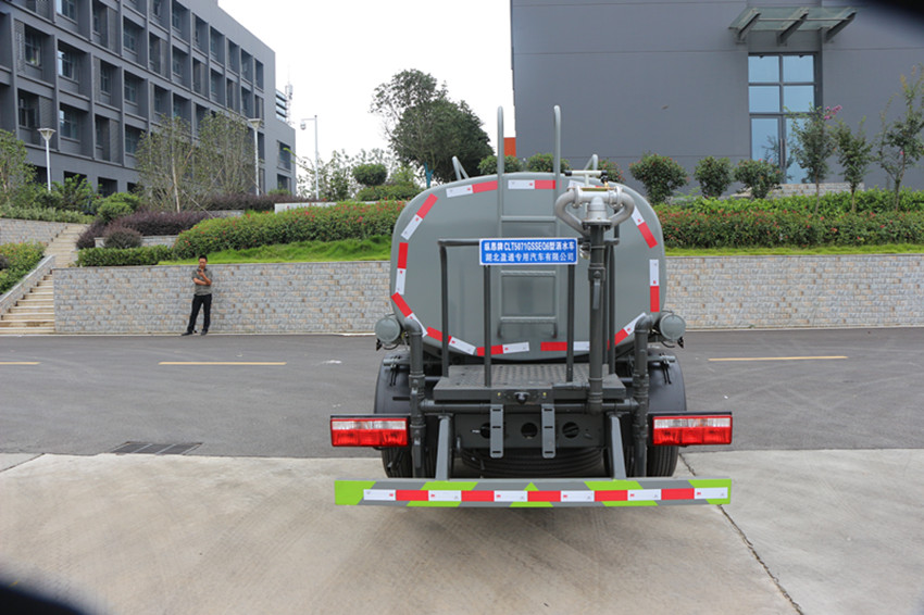 灑水車是裝配專用裝置為噴灑裝置,儲液箱等,主要用于鐵,道路,自卸車,城市廣場,散裝物料堆等各種場所除塵.整車長/后懸/軸距對應關系為(mm):5995/1632/3308,5640/1635/2950,5390/1635/2700.側防護材料為Q235,連接方式為連接支架固焊在副車架大梁上.后防護材料為Q235,連接方式:用結構連接件固焊在主車后端,后部防護裝置斷面尺寸(寬×高)40×120(mm),后部防護離地高度:450(mm).選裝前面罩,前保險杠,前組合燈具.ABS型號/廠家:ABS/ASR-12V-4S/4M/襄陽東風隆誠機械有限責任公司.