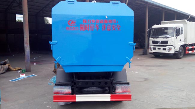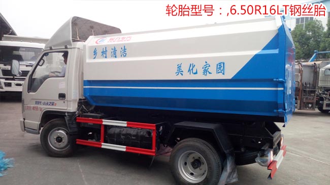 垃圾車上裝配置:全密封式垃圾箱體,采用優(yōu)質(zhì)武鋼產(chǎn)碳鋼板焊接制作,邊板折彎強化,箱體右側(cè)配液壓掛桶提升機,可掛國標(biāo)120升或240升塑料垃圾桶,提升速度快,穩(wěn)定性高,尾門彈簧鎖扣帶橡膠密封條,箱內(nèi)設(shè)污水欄,箱體雙缸液壓自卸,多路閥手柄操控。
