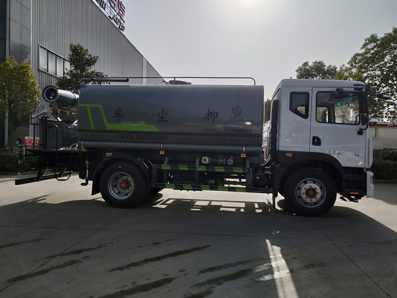 灑水車功能參數(shù)配置:配前沖,后灑,側(cè)噴,帶后工作平臺(tái),尾部帶綠化灑水車高炮,射程在30米左右,可以調(diào)節(jié)水柱狀態(tài)