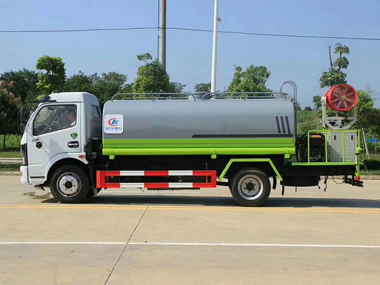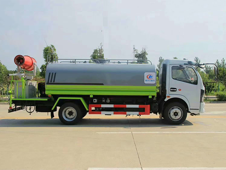 國六東風5噸灑水車專用功能為:前沖后灑,側噴,罐體后帶工作平臺加護欄,平臺上安裝綠化灑水高炮,射程28米左右,可調節(jié)多種形態(tài)(大雨、中雨、霧狀),配備大功率專用灑水泵,泵可吸自排,帶自流閥,帶消防接頭,帶過濾裝置,兩根吸水管。另外該車可選裝A、后部帶弧形噴霧和LED箭頭指示燈;B、后部帶LED箭頭指示燈;C、后部帶弧形噴霧裝置。