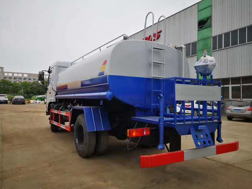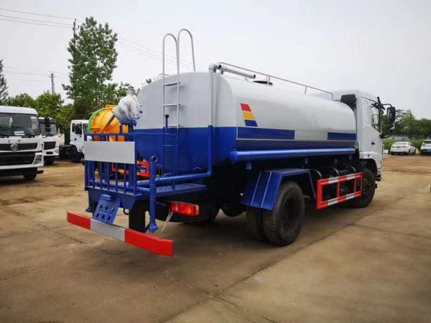 12噸灑水車上裝配置:東風國六12噸東風F5灑水車,配備國內(nèi)大功率灑水車水泵,可自吸自排,引水時間<15min,流量40m3/h,揚程35米。其它部分標配為:前沖、后灑、側(cè)噴、后工作平臺、360度可調(diào)節(jié)綠化水炮,水泵垂直吸程≧7米,前沖灑水寬度≧14米,綠化水炮射程≧35米,自流閥、濾網(wǎng)、消防接口(可連接消防栓取水,可作應急消防用)。罐前量管(觀察罐內(nèi)水位)、罐后爬梯、罐上罐口帶簡易護欄、罐側(cè)雙炮筒、6米長4寸鋼絲塑膠管兩根,罐體表面雙層油漆工藝,防銹、耐腐蝕,其余有廠家標配。