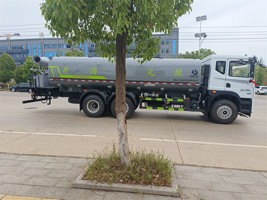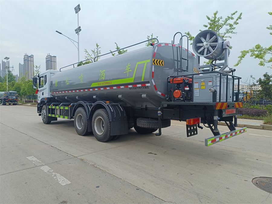 東風(fēng)新款22噸霧炮灑水車產(chǎn)品標(biāo)配前噴(鴨嘴)、后沖、后灑、側(cè)噴、后置式工作 平臺,平臺上配置綠化水炮(可 360 °旋轉(zhuǎn),既可以調(diào)成柱狀,也可 以調(diào)成霧狀,更可以調(diào)成直沖狀、大雨、中雨、小雨、毛毛雨),配 備優(yōu)質(zhì)大功率專用灑水泵(可自吸自排,可從河里或池塘抽水到罐體), 取力器,雜物過濾網(wǎng),消防接口, 自流球閥系統(tǒng)、取力器、球閥、濾網(wǎng) 均為國家標(biāo)準(zhǔn)產(chǎn)品,主管道加粗,法蘭墊、法蘭盤加厚,大通徑球閥。 整體具備性能優(yōu)良安全可靠、效率高、流量大、維修方便等特點。