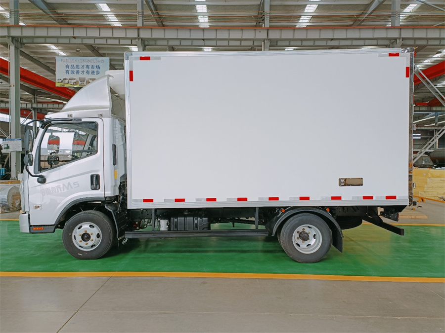 廂體底部為塑鋼花紋板,廂內(nèi)側(cè)面帶圍裙,前部排水孔,門邊條采用防雨設(shè)計(jì)和迷宮式橡膠密封條,鋁合金型材包邊,不銹鋼包角,不銹鋼門鎖,加厚型不銹鋼后門合頁(yè)及鎖件,廂體內(nèi)采用LED照明燈。