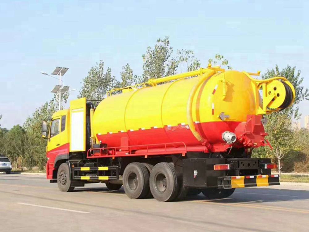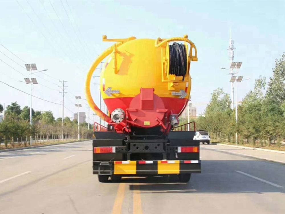 清洗裝置:配天津通潔300升高壓泵, 60米PVC雙層高壓管22通徑高壓管,10個高壓噴頭,兩個水泥蓋,頂部100的互通,水污互通用100的球閥,水罐3寸球閥安在罐體最底部.水倉污倉罐體內(nèi)噴防銹,后封頭600的液壓口,一個6寸自流,一個4寸的進(jìn)料口,一個4寸的排污口,側(cè)面一個6寸的球閥偷排。后蓋加裝活動可拆式卷盤壹套,右后側(cè)一套卷盤,罐體采用8個厚鋼板制作,后蓋上帶一個600液壓口排污,300側(cè)邊自流口。